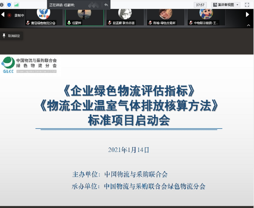 2021年1月14日,由中国物流与采购联合会绿色物流分会牵头起草的两项行业标准《企业绿色物流评估指标》、《物流企业温室气体排放核算方法》项目启动会在北京召开,中国物流与采购联合会副会长任豪祥出席并讲话。