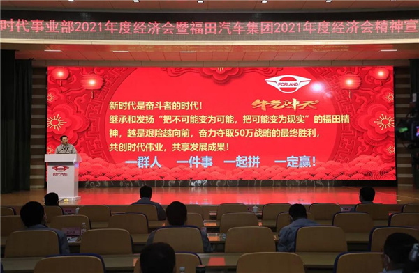 1月29日,时代事业部召开2021年经济会暨贯彻福田汽车集团2021年度经济会精神大会。福田汽车集团副总经理、时代事业部党委书记、总裁王术海等经营团队领导,事业部诸城厂区/潍坊厂区L4.2及以上人员等共计150人现场参会,其余人员通过观看直播的形式参会。