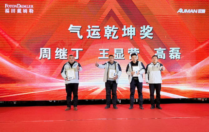 活动现场,欧曼为山东、河南区域在气耗、里程等方面表现优异的客户颁发了风云人物奖项。分别向2023年度气耗最低客户授予“气运乾坤奖”,向2023年度里程最长客户授予“气贯长虹奖”,向行驶总里程最长客户授予“气吞山河奖”,感谢客户长期以来对于欧曼品牌的信任与支持。