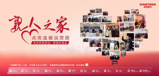中国重汽打造的“亲人之家”服务体系,致力于提升卡友的生活品质和职业尊严,为卡友们提供免费停车、免费休息、免费餐食、免费住宿、免费洗浴、免费洗衣等舒适如家的暖心服务。服务从车辆延伸至人,中国重汽通过“亲人之家”为卡友们提供更多的关爱和帮助,构建有温度的行业生态。