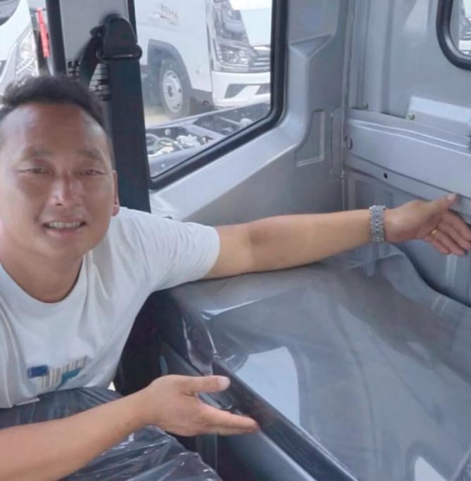 在朋友推荐下,胡师傅最终选定了两个品牌的排半车型,准备在拉红薯的同时拉点随车工具,平时在地里收菜累了,还能钻车里平躺睡一觉,在发觉A品牌的车型后排空间仅有35厘米宽时,胡师傅果断放弃了,最终选择了东风小霸王W15排半车型。