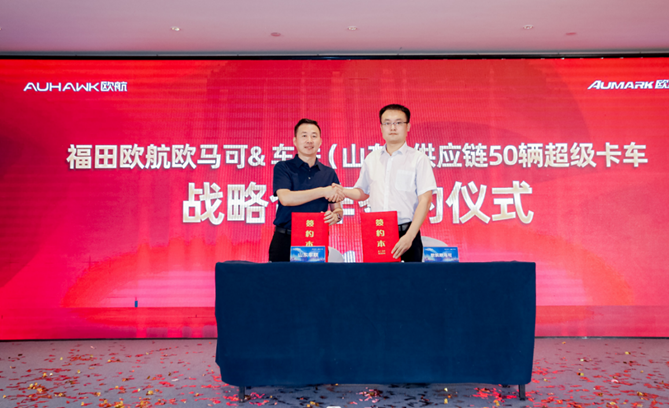 【车联(山东)供应链管理有限公司董事长王海刚与福田汽车欧航欧马可事业部营销公司山东大区经理丁栋战略签约】
