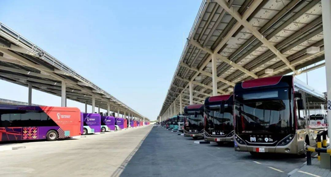 图 | 停放在卡塔尔最大电动车场站的宇通客车