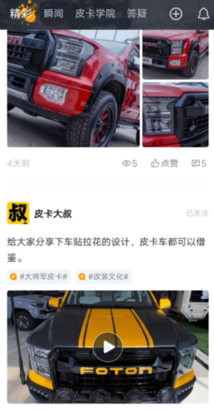 福田皮卡专为皮卡爱好者打造的专业沟通互动平台——皮卡生活APP现已火热上线,万千皮卡玩家已汇集,来这里分享他们的故事,与皮卡大叔等行业大V交流改装经验,尽享一站式皮卡生活体验。眼下正值四年一次的足球盛事,亿万球迷正迎来一场狂欢盛宴,为给热爱足球的皮卡车友打造精彩的互动体验,深度链合天南地北广大皮卡爱好者,皮卡生活APP正开启“我是预言帝”精彩竞猜活动,邀您一起玩转世界杯,参与优胜队伍竞猜,iphone14、车模、商城积分…多重好礼等你来拿,赶快参与吧!