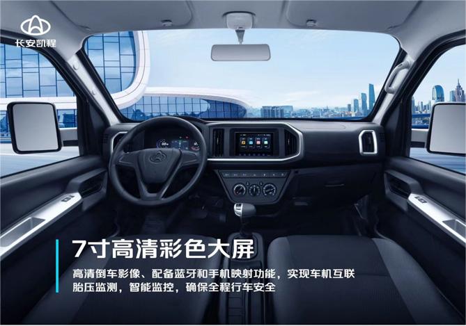 长安神骐T30EV搭载7寸高清大屏、配备蓝牙和手机映射功能,可实现车机互联、车物互联,配备USB接口支持手机快充,2小时轻松充满电。高清彩色倒车影像,辅助用户倒车停车,操控便捷更安全。