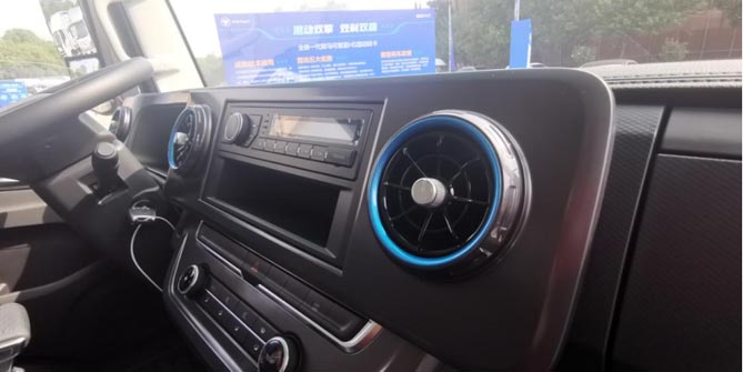 试驾的欧马可S1自动挡轻卡没有配装中控屏,但有需要的卡友可以进行选配。欧马可S1自动挡轻卡的空调出风口也让人印象深刻。出风口采用航空涡轮造型,可以360°控制风向,中部的旋钮向右拧开启风道,向左拧关闭风道,并且阻尼感十分高级。福田欧马可在车辆细节方面的精细打造,让人敬佩。
