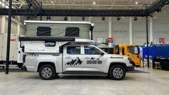 还有江铃大道宿营车,内设厨房、卫生间,将天地广阔纳入一方空间,引领四驱越野背驮房车新趋势。将助力用户实现心中的热爱,发现与探索生活更多的向往,开创户外生活新时代。