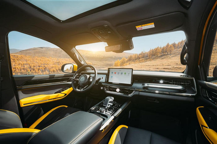 山海炮性能版车身尺寸为5462mm*1992mm*1960mm,整车尺寸接近全尺寸级别。大尺寸带来了同级最大、最宽、最舒适的驾乘空间,内部肘部宽度达1.6m,即便冬季身着厚重防寒服,也能伸展自如,丝毫不会感觉局促。