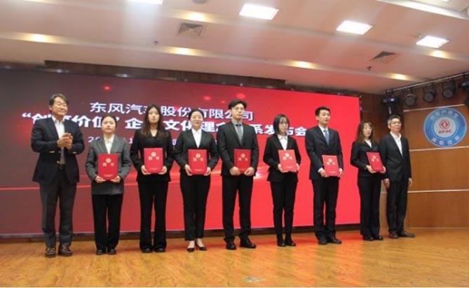 据介绍,“创享价值”企业文化反映了东风汽车股份“承载万千信赖,服务美好生活”的使命与经营哲学,依靠以“创新”“坚毅”“诚信”“实干”为价值观的十二条行动纲领,形成了一套从理论到实践,全方位引领战略达成的文化体系,是东风汽车股份实现战略转型的必然选择,旨在进一步加强与客户、员工、股东、合作伙伴、国家、社会等利益攸关方的共赢关系,打造世界一流的轻型商用车企业。同时,结合七大业务领域特点,东风汽车股份创造了“1+7”企业文化孵化模式,既反映了“创享价值”企业文化共性,又体现了七大业务领域子文化个性,母子文化相辅相成,共同支撑东风汽车股份文化理念体系。