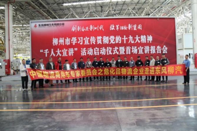 10月26日,由中国物流商用车专家委员会、上海市危险货物道路运输行业协会、天津德利得物流、镇海石化物流、开封交通运输集团、湖南鸿胜物流、新奥能源物流等协会和知名危化物流企业组成的“危化品物流企业参观考察团“,一行到达柳州,走进东风柳汽参观重卡总装车间,实地了解重卡的生产过程,考察柳汽品牌生产制造实力。