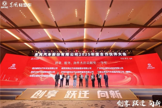12月21日,以“创享 跃迁 向新”为主题的东风汽车股份2025年合作伙伴大会于湖北襄阳隆重召开。东风汽车党委常委、副总经理张祖同,东风汽车集团商用车事业部副总经理、东风汽车股份总经理李军智,东风汽车股份党委书记刘志军,襄阳市政府党组成员张斌,以及东风汽车股份数百家经销商及服务商、战略合作伙伴代表共聚一堂,叙合作友谊,商发展大计。