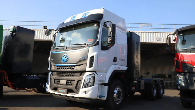 新能源车辆普遍存在自重较大的问题,直接影响到运营载货量和运输收益。为解决这一痛点,乘龙H5 600度大电量牵引车以轻量化为核心设计理念,采用35项轻量化技术,科学降重不降质,整车重量降至11.8吨,较同级产品轻400公斤;并搭载460kW大功率电机与6档AMT变速箱,三电高效动力链匹配,动力强劲,效率提升5%,实现多拉快跑,为用户创造更多价值。