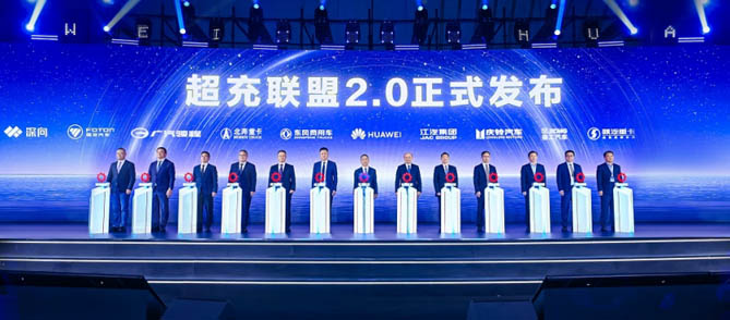 在会上,华为数字能源携手北奔重汽、北汽福田、东风商用车、DeepWay深向、广汽领程、江淮汽车、庆铃汽车、陕重汽、徐工汽车共9家车企(排名按照拼音字母顺序)、充电运营商及行业伙伴等共同见证了“超充联盟2.0”发布,标志着产业生态从乘用车领域扩展至商用车领域。基于该生态,与伙伴共同定义商用车超充标准,构建兆瓦超充一张网,加速重卡迈向全面电动化时代,使能重卡电动化从封闭场景走向全场景,实现物流行业大规模降本减碳,开启全电物流新时代。