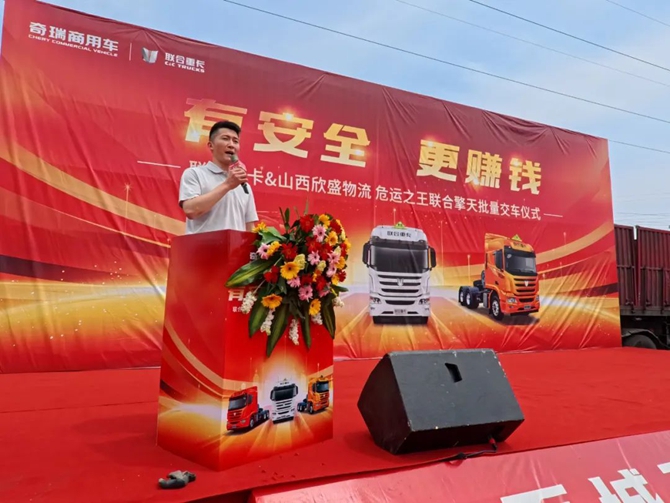 “联合擎天是奇瑞商用车重磅打造的一款有温度有担当的民族重卡,产品的安全性能全面超越了行业内的其他重卡产品,是当之无愧的危运之王。”