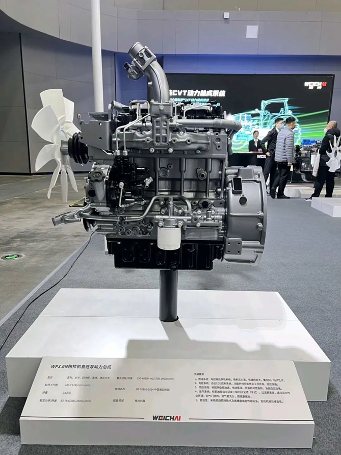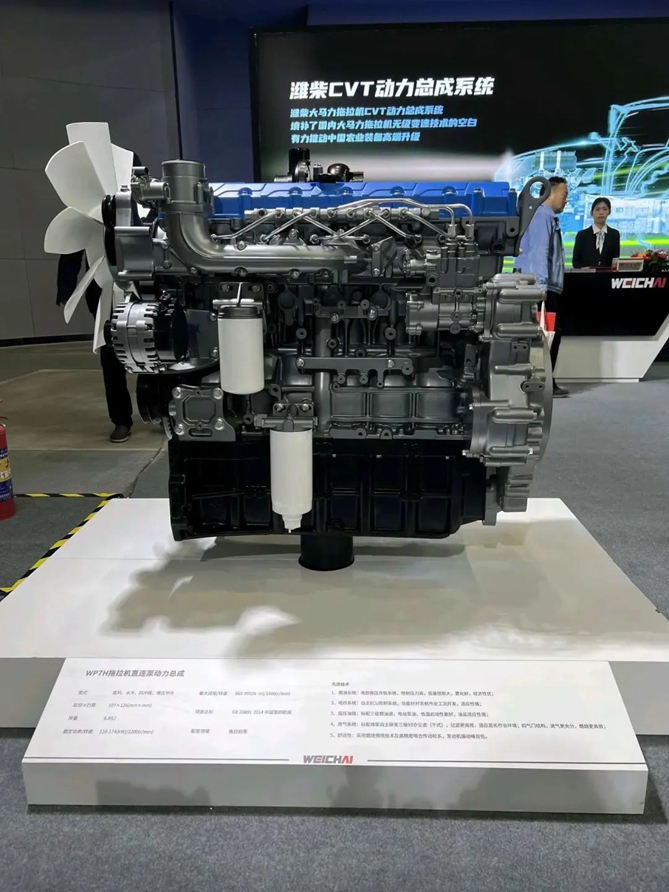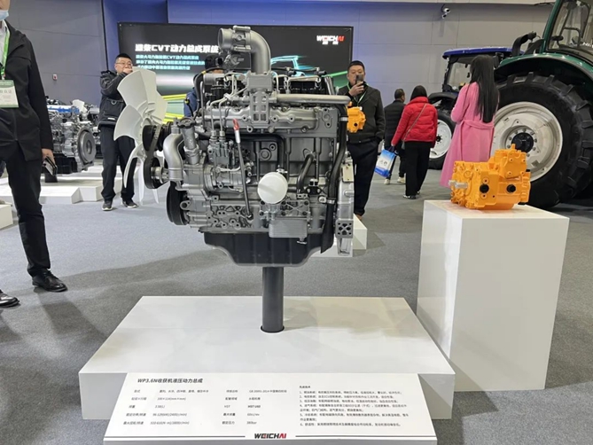 本次亮相的拖拉机直连泵动力总成包括WP3.2、WP3.6N、WP4.1N,WP7H、WP7等五款产品,燃油系统均采用电控高压共轨系统,喷射压力高、低速扭矩大、雾化好、经济性优;电控系统为自主ECU控制系统,功能针对农机作业工况开发,适应性强;进气系统标配潍柴自主研发三级93沙尘滤(干式),过滤更高效,适应恶劣作业环境。进气更充分,燃烧更高效;采用燃烧预喷技术及高精度啮合传动轮系,发动机振动噪音低。