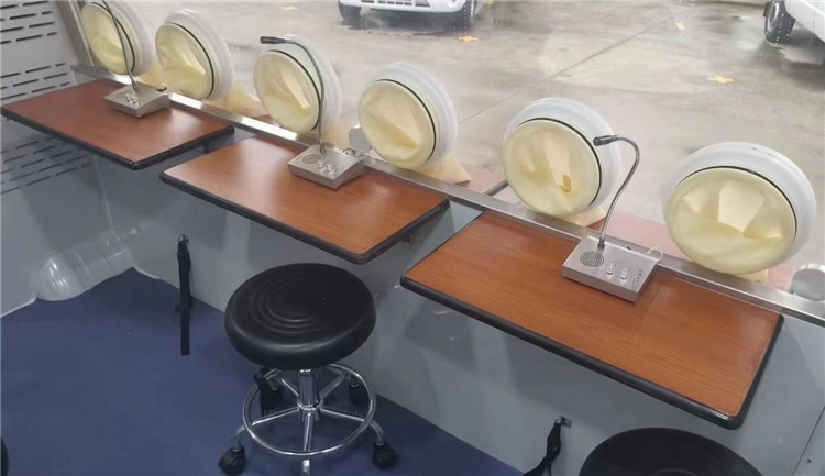 依维柯欧胜核酸采样车还搭载了生物样本存储箱、驻车空调、车内新风净化系统等各类先进功能仪器,确保在整个作业流程内,车内医务工作人员与车外受检人员无接触,最大限度的保障了一线医务工作人员的安全。采样工作结束后,可开启车内的紫外线消毒灯以及臭氧发生器,在设定的时间内完成车内的消毒作业,确保工作环境的清新健康。