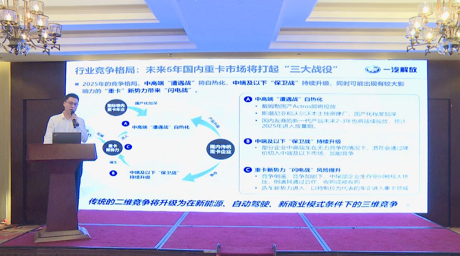 会议最后,北汽福田法规与认证部副总监袁军成和中国重汽战略规划部经理于海淼分别就商用车物流运输市场和商用车海外市场发展献言献策,提出了诸多建设性的发展建议。