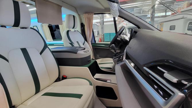 齐星星领的商务座椅可实现四向调节,带有按摩、加热、通风功能,长途旅行舒适性更高,可拆卸式的小桌台上面置有800W的电磁炉,日常车内可进行轻油烟的简餐烹饪。