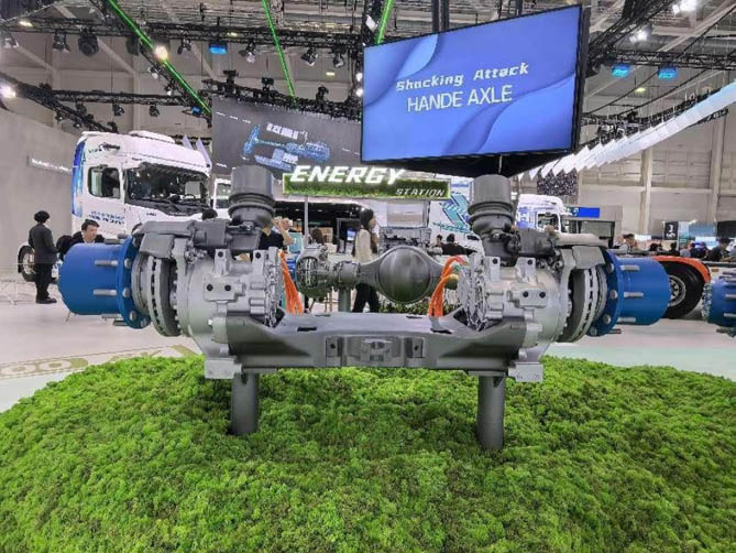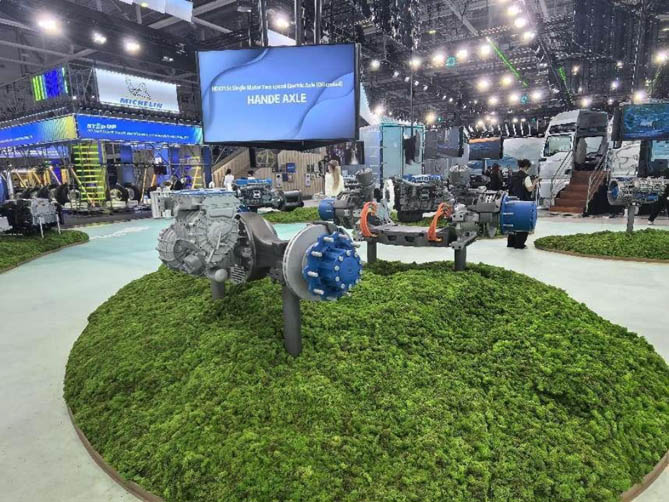 匠心巨献,智驱未来!汉德车桥在本次车展上重点展出了其两款新能源明星产品--HDE11.5t单电机两档电驱桥(油冷)和HDE13t轮边电驱桥,凭借其高效率、轻量化和免维护等显著优势赢得了国际市场广泛赞誉。