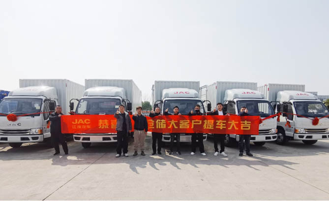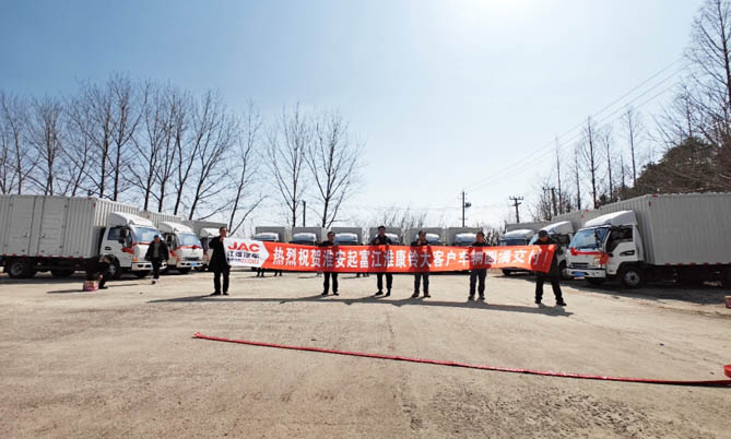 在淮安,江淮1卡康铃向淮安知名商贸公司批量交付康铃H5。从2015年起,该客户每年都会采购一批康铃轻卡,十年携手与共,江淮1卡见证了客户的事业版图日益壮大。