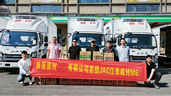 在贵州,江淮1卡威铃向贵州农贸大客户批量交付威铃M6定制版冷藏车,以强动力、高承载,冷链技术等核心优势助力客户构建高效冷链网络,为乡村振兴与农产品流通高质量发展提供坚实支撑。