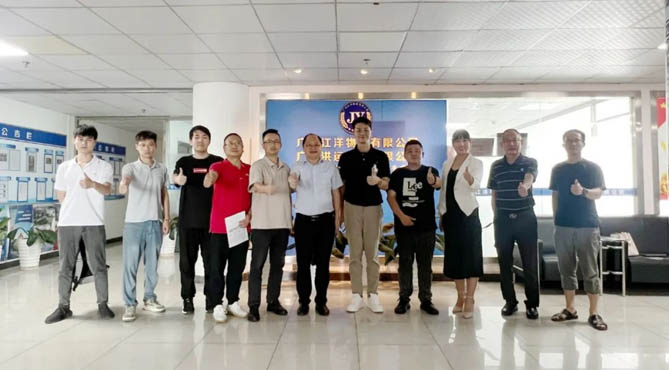 广州江洋物流有限公司总经理曹阳洋(右五)、韬克商用车网总编刘威(右四)与参观团的合影