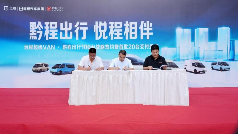 7月22日,远程超级VAN与黔程出行100台战略签约暨首批20台悦程版交付仪式在贵州举行。远程超级VAN西南特区大区经理关贵根、贵州海翔集团品牌总经理纪伟、黔程出行创始人兼董事长罗富坤等出席活动。此次合作标志着双方在绿色出行领域的深度布局,将为贵州用户带来更高品质的定制客运体验。