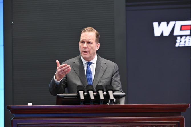 “不争第一就是在混!”这是来自意大利法拉帝集团CEO阿尔伯特·格拉斯的分享主题,也是潍柴的激情文化,更是法拉帝2023年保持高速增长的原动力。格拉斯说,2023年是法拉帝集团有史以来最好的一年,继中国香港和意大利米兰上市之后,密集实施了很多商务措施,连续四个季度实现了净收入、净利润的增长。他认为技术创新是实现可持续发展的引擎,得益于潍柴强大的支持,帮助其扩大了产能、开拓了亚太市场,使其继续保持着全球领先的地位。