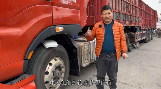 “我经常检查康迈免维护轮端,看一眼缺不缺油就行,要是不缺油的话,一般路上不用操心”。传统脂润滑轮端平均5、6万公里就要拆卸维护一次,每一次花费的材料费、手工费、误工费等加起来都是不小的数字。而康迈免维护轮端的一大优势,便是大幅延长换油周期,免去传统脂润滑轮端的维养费用,大大降低维护成本。