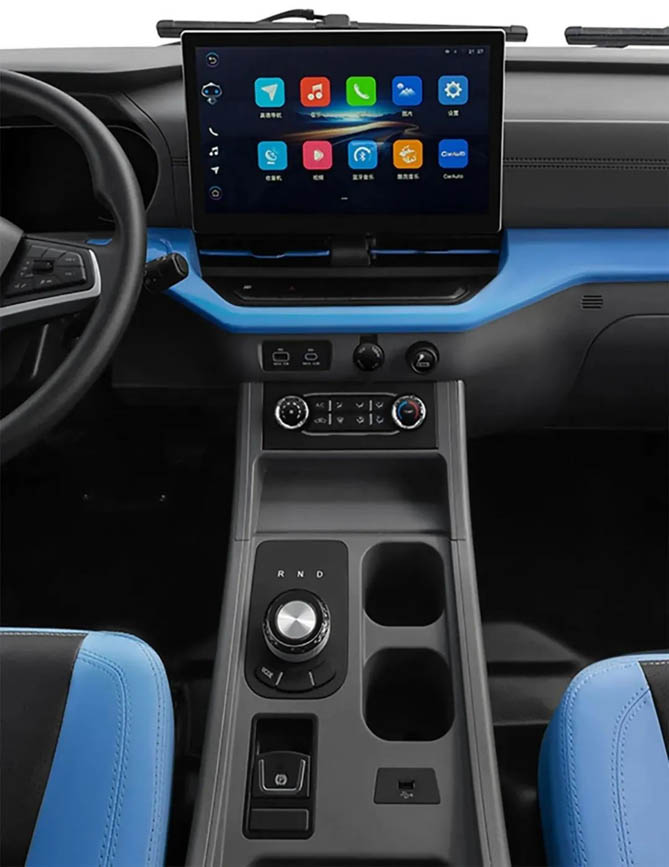 进入车内,领跑L3也一改其他小卡车型的固有格调,驾驶室采用全包内饰、轿车化中控台设计和主副座椅布局,中央扶手匹配按摩减震通风加热座椅,主副座驾都是头等舱;同时中控台和座椅采用双色撞色点缀设计,年轻活力值拉满,绝对能讨新一代年轻卡友的喜爱。