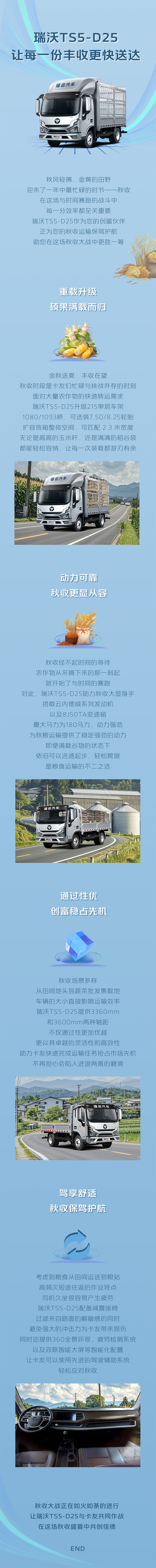 硬核真实力|精准对位秋收需求,瑞沃TS5-D25让每一份丰收更快送达!