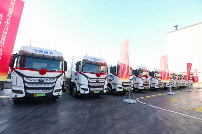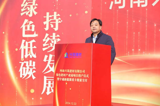 12月22日,河南兴筑建材有限公司绿色建材产业园项目投产仪式暨宇通新能源重卡批量交付活动隆重举行。