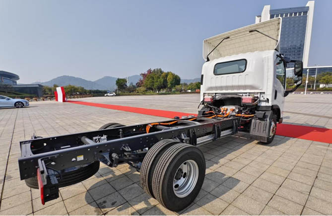 乘龙L2V新能源轻卡搭载单包电池,置于大梁中央,能降低整车重心,重量更轻、体积更小也更安全;电池最高可搭载140kWh高可靠性电池,满电综合续航超过420公里;采用29项降电耗措施及电控策略、风阻优化,百公里电耗31度/百公里,每公里电耗不到4毛钱。