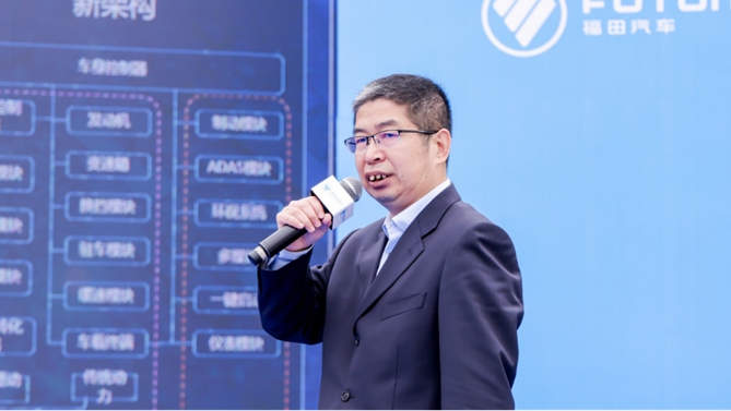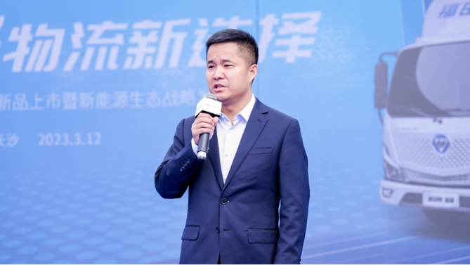 【福田汽车工程研究总院轻卡技术中心主任张文明讲解欧马可智蓝E系列纯电产品】