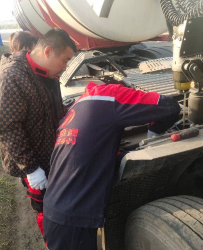 在紧急服务流程启动后,上汽红岩售后服务部立马跟进,第一时间派工服务站前往处理。接到派工后,山西金骏华服务站的两位工程师郭亚斌、孔庆吉首选采取与用户视频连线的方式远程指导排查,然而始终无法彻底排除故障。凭借丰富的维修经验,郭亚斌初步判断是车辆后处理的故障,于是两位师工程师拿到配件之后便火速前往用户所在的张家口张北县安固里大道。虽然已是深夜,但两位工程师深知被困司机的急切,经过几个小时的长途行驶,郭亚斌和孔庆吉终于在凌晨 5 点多抵达事故所在地,并为司机带去了水和干粮。
