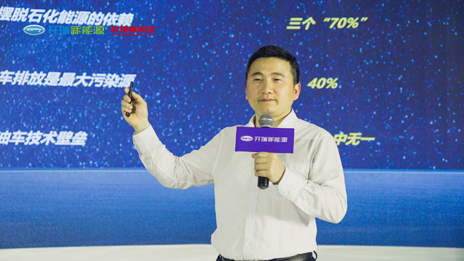 开瑞新能源营销公司副总经理王广友现场为大家解读开瑞江豚上市一周年获得爆款销量背后的原因,他说作为行业内第一个真正打通“人·车·货·场”全生态价值链的企业,开瑞新能源为用户提供购车、金融、汽车租赁、运力加持等服务,并在业内率先提出并落实用户收入,让司机小哥的创富之路越走越顺,越走越宽。