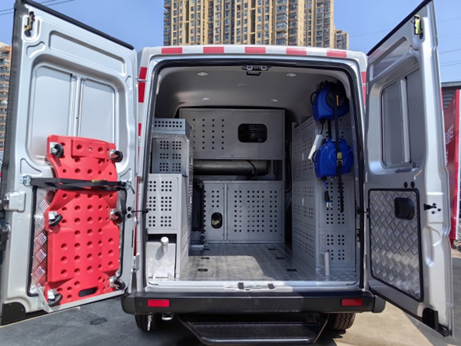 据技术负责人介绍:“基于东风御风V9+‘大强全省’的底盘优势,这次服务车改装配置主要集中在发电机、空压机、电鼓气鼓等模块,设计上对空间布局进行了实用性优化,根据功能用途进行合理分区,同时增加了舱内作业和储物空间,使得整款移动售后服务车具有灵活、方便、快捷的特点。拓展了售后服务场景,可以直接为客户提供包括上门保养轮胎更换、小修等维保项目。”