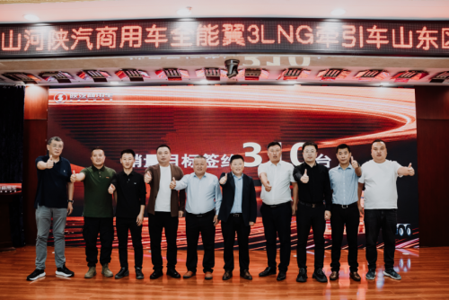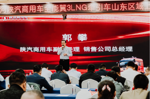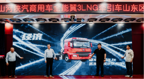 致辞后,陕汽商用车相关领导与玉柴动力股份有限公司山东办事处主任、故城舒心汽贸总经理等嘉宾共同启动了全能翼3LNG牵引车山东区域上市仪式。