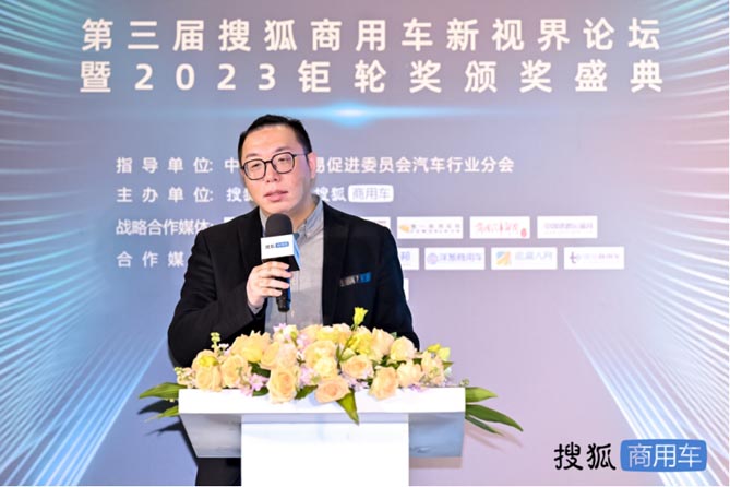 搜狐网副总编辑、汽车事业部总经理晏成从媒体视角进行分享,他首先分享了2023年商用车行业三大亮点——新能源商用车增长势头良好、国内外市场开放性进一步提升、细分市场迎来更加多元化的发展。他说:“多元发展也意味着新需求、新市场和新格局。商用车产业链上下游必须看准时机,聚集力量,果断布局,转型突破。”