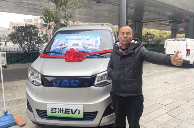 置办新能源“年货”的还有来自安徽合肥的陈老板,他是合肥首位多米EV1的车主。多米EV1是江淮1卡推出的新能源纯电微卡车型,购车、用车成本低,油电同价,是年轻人创业致富的好帮手。“以前开的汽油车一公里成本要6~7毛,这款多米EV1一公里才1毛多,太划算!”陈老板点赞道。