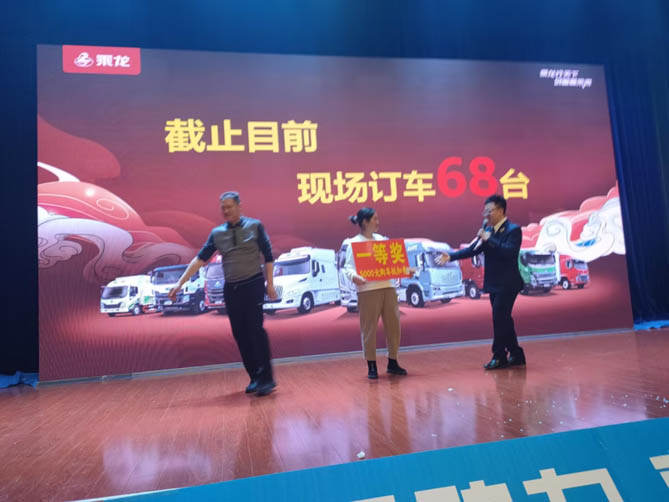 乘龙H7 580LNG得到了现场卡友的一致认可,加上超值的购车政策福利,更是让卡友心动不已,现场就斩获68辆订单!