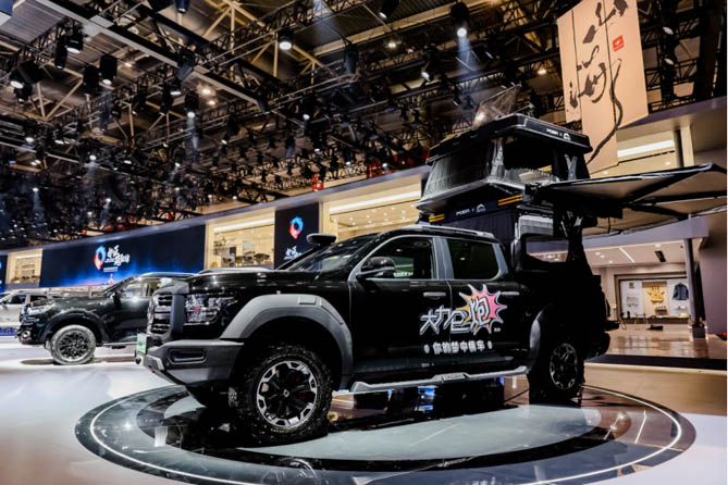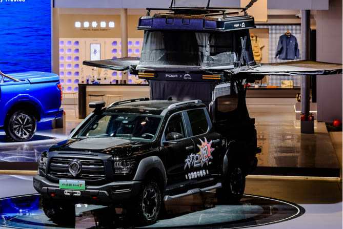 基于长城自主研发、独有越野超级混动架构Hi4-T打造的“全球首款高端豪华越野新能源皮卡”山海炮Hi4-T,同台发布,提供越野新能源皮卡最优解,引领中国皮卡4.0全场景智能新能源时代。同时,与全网瞩目的“大力仑炮”三件套同系列的“山海炮Hi4-T+山海居+专属车贴”也亮相车展。
