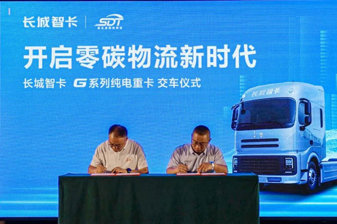 7月4日,长城商用车零碳快递物流运输示范项目签约仪式暨长城智卡G系列纯电重卡交车仪式在青岛圆满举行。