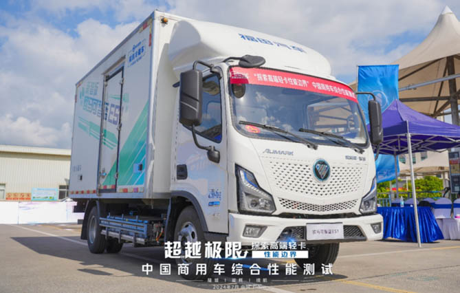 在平均气温31.5度、平均湿度76.5%、最高风力5级的环境下,福田欧马可智蓝ES1新智版满载车货总重4.5T,全程开空调三档,两名专业测试人员和1名商用车品鉴师轮番驾驶,最终取得了极限续航500+,百公里电耗24.29kW·h,1度电续航4.11公里的卓越成绩。