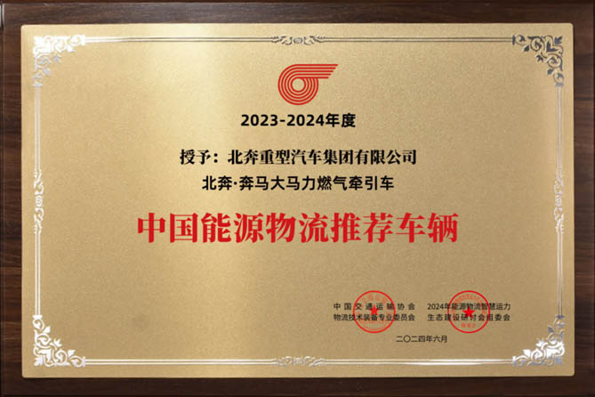 北奔重卡荣获“中国能源物流推荐车辆”