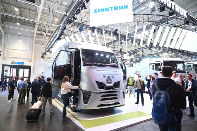 在第71届德国汉诺威商用车展(2024 IAA)上,中国重汽以“Zero to Hero”为主题,携旗下全新升级的黄河氢内燃机牵引列车、汕德卡氢燃料牵引车、HOWO统帅PRO纯电动冷藏轻卡等共计7款匠心杰作车型盛大亮相,在全球汽车产业加速向电动化、智能化转型的浪潮中,向世界展示中国重汽绿色、智能、高效的解决方案,为全球商用车产业的发展贡献中国智慧与中国方案。