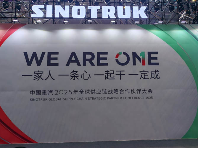 2024年12月11日,以“WE ARE ONE——一家人、一条心、一起干、一定成”为主题的中国重汽集团2025年全球供应链战略合作伙伴大会在山东济南成功举办。山东省委常委、济南市委书记刘强,山东重工集团党委书记、董事长满慎刚出席活动并致辞。