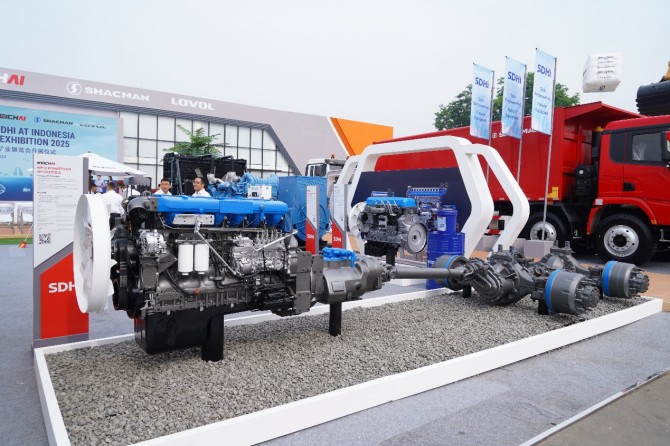 山东重工集团此次展出的核心产品均针对印尼及东南亚市场的特殊需求深度优化,集中展出了动力总成、挖掘机、装载机、推土机、平地机、压路机、自卸车、牵引车等在内的多款前沿产品。其中潍柴动力总成凭借响应更快、动力更强的优势,成为大马力机械设备的重要动力来源;山推、雷沃重工展出了配备挖掘机动力总成的百吨级矿用挖掘机SE1500LCW和FR2000F,与中国重汽和陕重汽矿卡、自卸车组合,成为大马力采装区的绝对主角,引得现场合作伙伴对产品给予高度评价,并纷纷表示对未来的合作充满信心!