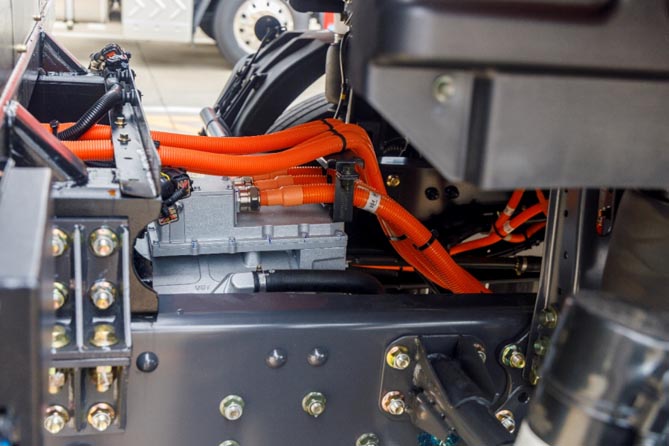 整车控制器还会自主标定控制策略以及能量回收策略,能量回收最大化,提升续航里程达20%。智能电控多态开关可根据使用工况合理调整档位,达到省电目的。并且还应用电控硅油离合器+无轮毂高效风扇,提高散热性能,应用低滚阻轮胎,更加节能降耗。