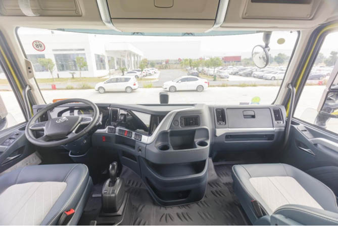 为卡友打造更舒适的工作环境,乘龙H7 580LNG牵引车内饰全新升级,高科技液晶仪表、多功能方向盘、多功能航空座椅等舒适性配置赶超高级轿车,精致“一室一厅”大空间, 纵享舒适,时尚大气,为卡友长途驾驶提供更舒适的驾乘体验,大大降低驾驶疲劳强度。